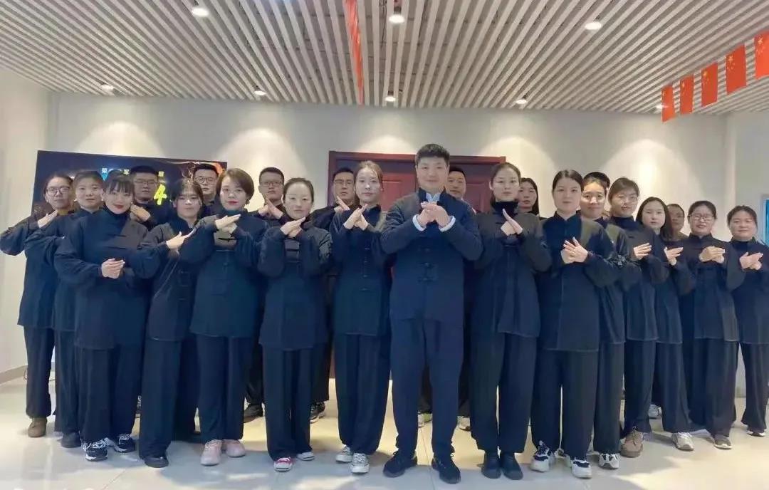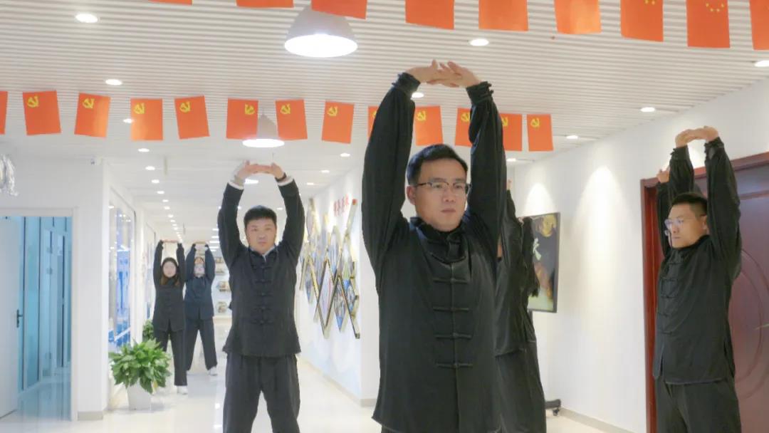 在公司領導的引領帶動下,全體員工都加入到了“八段錦”訓練的行列中來。每日晨會,員工們都紛紛加入其中,有時王海軍總經理還親自示范指導,領著大家練、帶著大家做,耐心細致地講解動作要領和注意事項,并在訓練結束后進行現場點評,為大家改進動作提出具有針對性和指導性的意見建議,讓大家在領略傳統太極文化魅力的同時,于文化熏陶中達到陶冶情操和強健體魄目的。